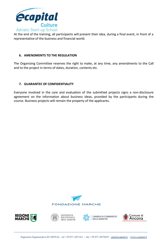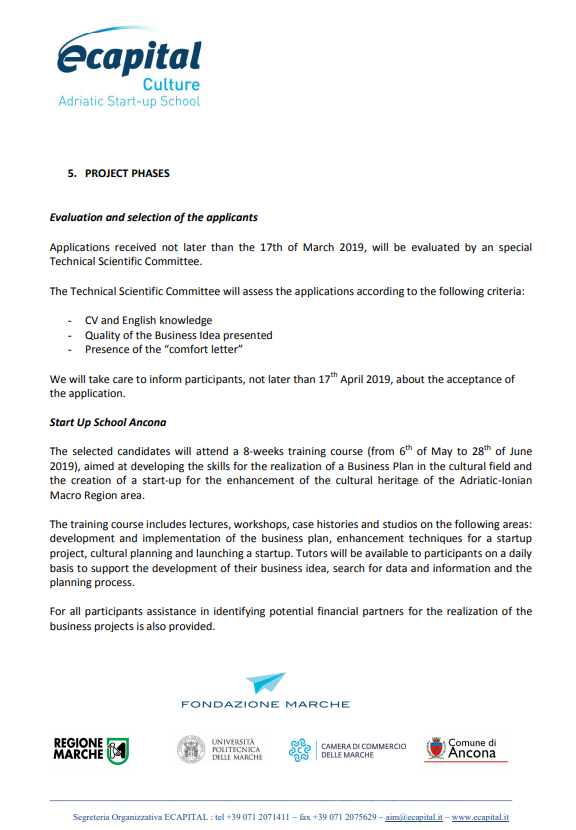 The competition takes its cue from ECAPITAL – Business Plan Competition, which for 18 years has promoted the creation of innovative companies in the Marche region (Italy), involving students in business plan projects.