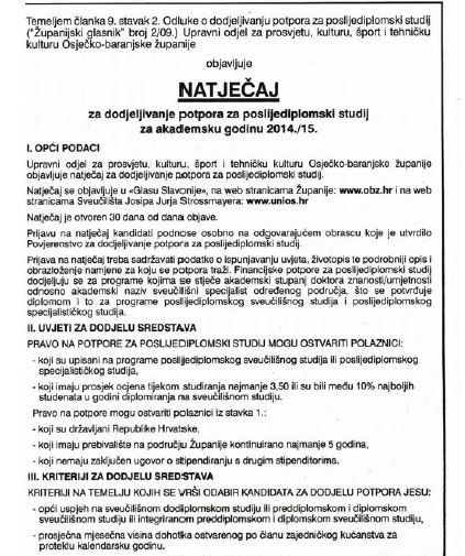 Homepage > Competitions > Stipendije Osječko-baranjske županije